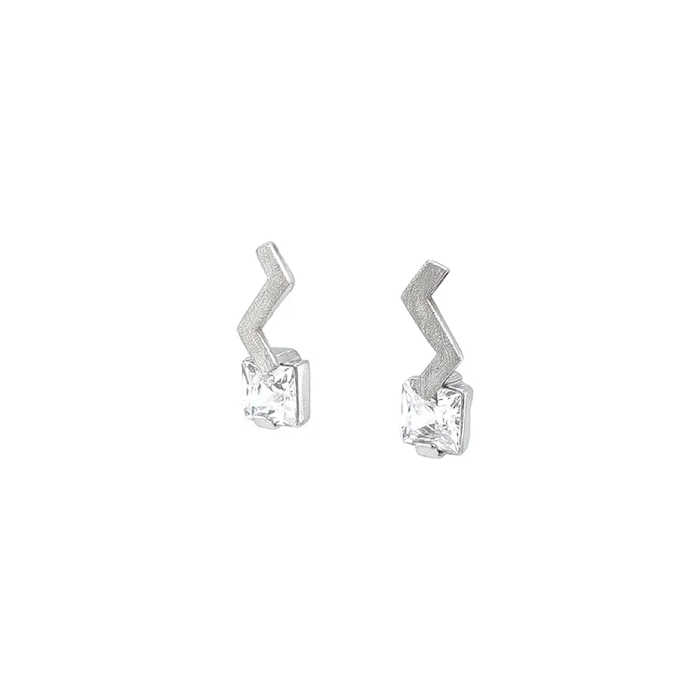 Moderní Náušnice z Bílého Zlata s Výraznými Zirkony