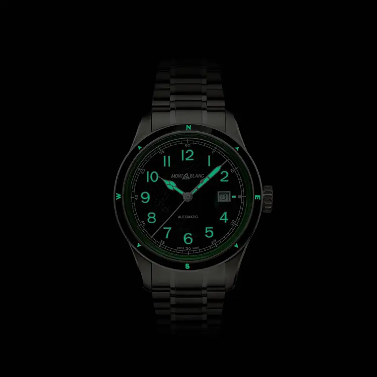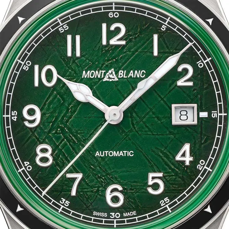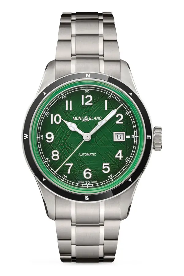 Montblanc 1858 Automatic Date 0 Oxygen 133269 spojuje technickou preciznost s duchem dobrodruha. Kulaté pouzdro z ušlechtilé oceli o průměru 41 mm doplňuje odolná keramická luneta a safírové sklo, které zajišťuje optimální čitelnost i za náročných podmínek. Výrazný zelený analogový ciferník evokuje přírodní scenérii a je doplněn praktickou datumovkou na pozici tří hodin.