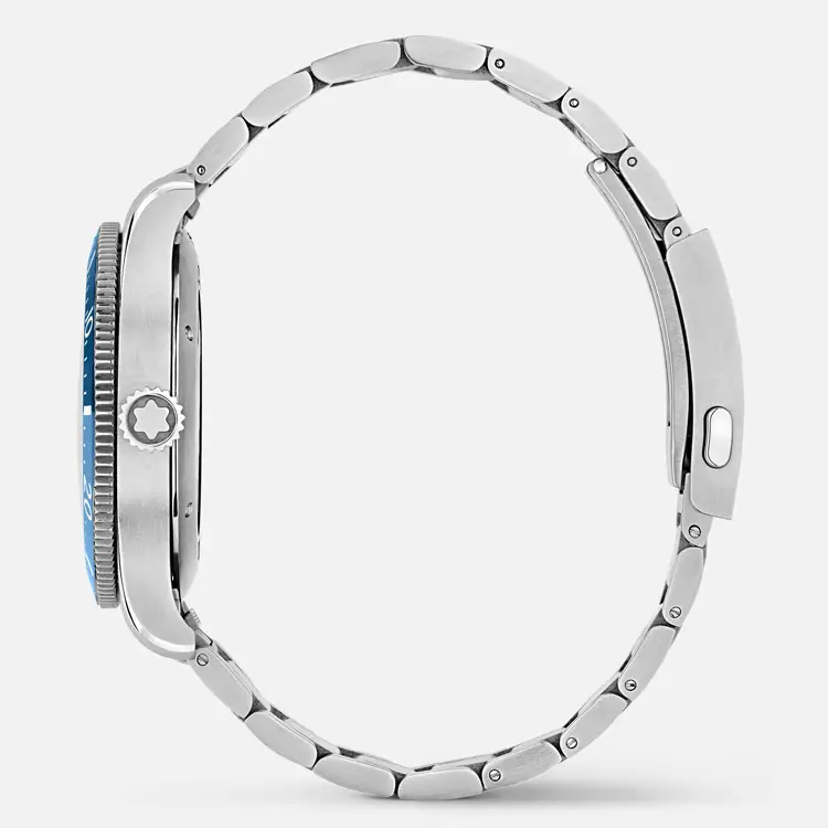 Model je navržen pro skutečné dobrodruhy – díky vodotěsnosti 30 ATM (300 m) obstojí i při náročném potápění. Elegantní ocelový tah ve stříbrné barvě s překlápěcí sponou zajišťuje pohodlné a bezpečné nošení, ať už se vydáte pod hladinu oceánu nebo do městské džungle. Montblanc 1858 Iced Sea v modré variantě je perfektní rovnováhou mezi výkonem, stylem a originalitou.