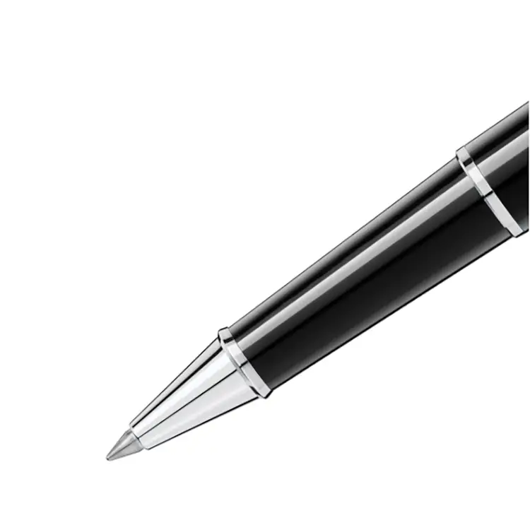 Tělo i víčko jsou vyrobeny z černé vzácné pryskyřice, jejíž lesklý povrch vyzařuje noblesu a hloubku. Platinou potažený klip s individuálním sériovým číslem podtrhuje autenticitu a exkluzivitu každého kusu. Vyvážené rozměry 136,9 × 12,5 mm zajišťují komfortní držení i při dlouhém psaní, zatímco nápis „Montblanc“ vyrytý na víčku je symbolem tradice, která obstála ve zkoušce času.