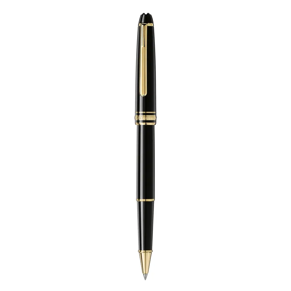 Pero Montblanc Meisterstück Cold-Coated Classique Rollerball 132457 představuje sofistikovanou kombinaci tradice, elegance a moderního vzhledu. Vyrobeno z vzácné pryskyřice, tělo i víčko zachovávají hluboký černý odstín, který vystupuje ve světle i stínu. Klip je elegantně potažen zlatem, což dodává modelu jemný nádech luxusu a exkluzivity.