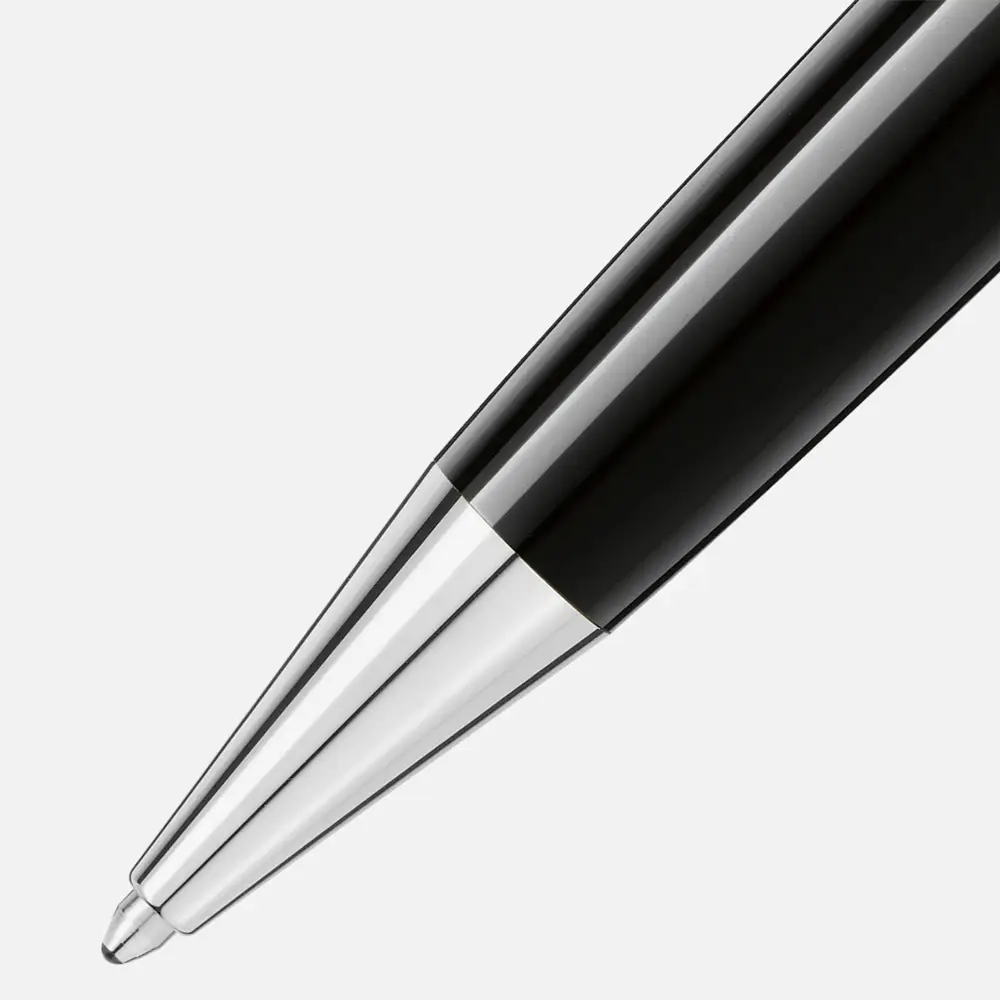 Tělo a víčko jsou vyrobeny z černé vzácné pryskyřice, která dodává peru hluboký lesk a odolnost vůči času. Klip potažený platinou září decentním leskem a dodává celku jemný kontrast. Rozměry 141,7 × 13,7 mm zajišťují optimální ergonomii a elegantní proporce.