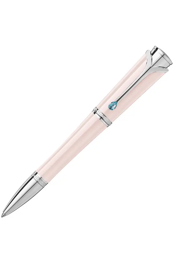 Elegantní dámské pero Montblanc Muses Poudré švýcarské značky Montblanc je vyrobeno z pryskyřice v populární pudrově růžové barvě. Design odkazuje na dámskou módu 50. let 20. století, pro niž byla ikonická spadlá ramena a štíhlý pas. Platinové doplňky zdobí rytiny diamantů z královského erbu Monaka.
