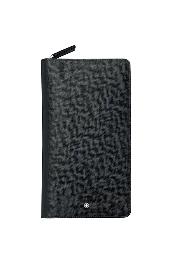 Podlouhlá peněženka Sartorial švýcarské značky Montblanc je vyrobena z telecí kůže. Žakárové podšití nese emblém výrobce, který rovněž zdobí přední stranu výrobku. Uvnitř se nachází 16 kapes na karty, 2 kapsy na bankovky a smyčka na pero. Peněženka se zapíná na zip a nemá kapsu na mince.