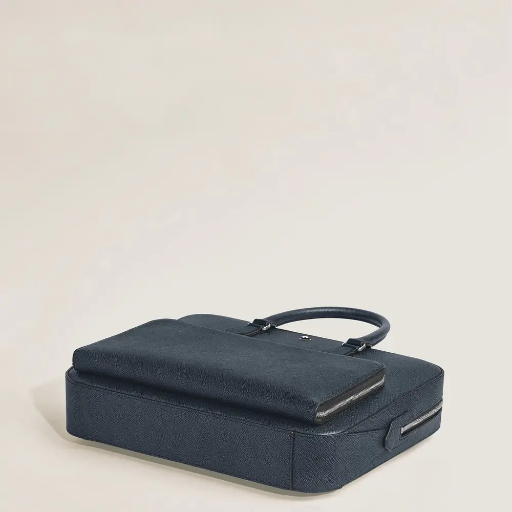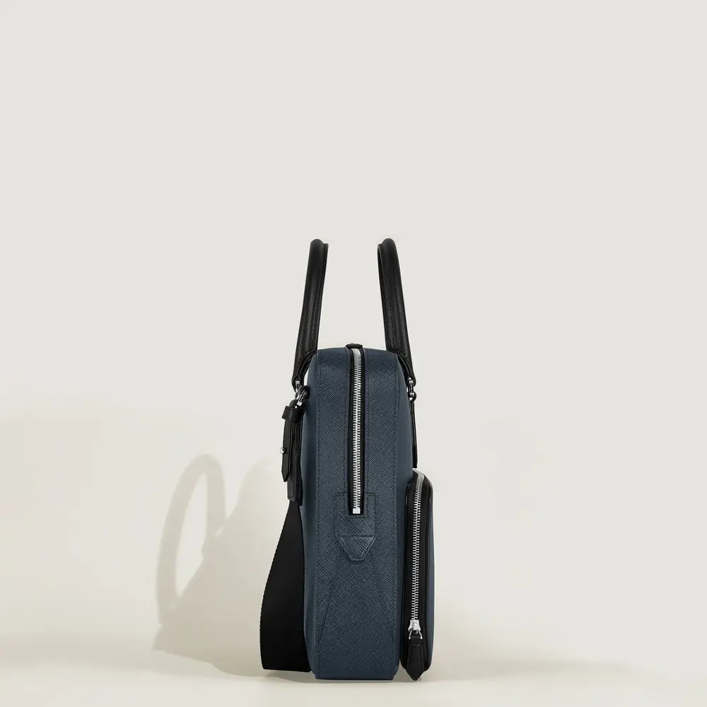 V elegantním odstínu Tweed Blue představuje Montblanc Sartorial Medium Document Case spojení moderního stylu a reprezentativního business vzhledu. Prémiová Saffiano telecí kůže dodává tašce luxusní charakter a vysokou odolnost, zatímco minimalistické linie a ikonický znak Montblanc podtrhují její sofistikovanou estetiku. Prostorné hlavní oddělení pojme dokumenty A4, 13' notebook, tablet i každodenní pracovní nezbytnosti.