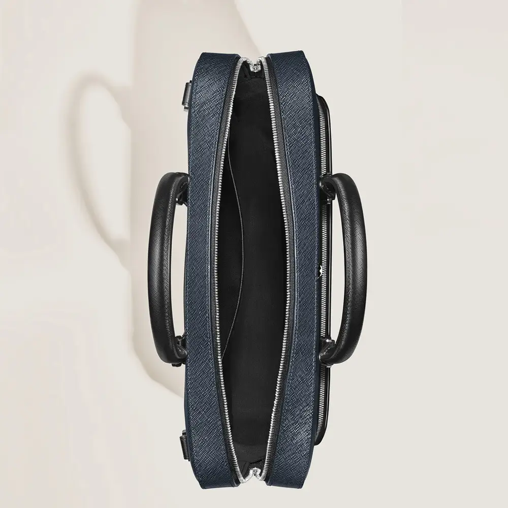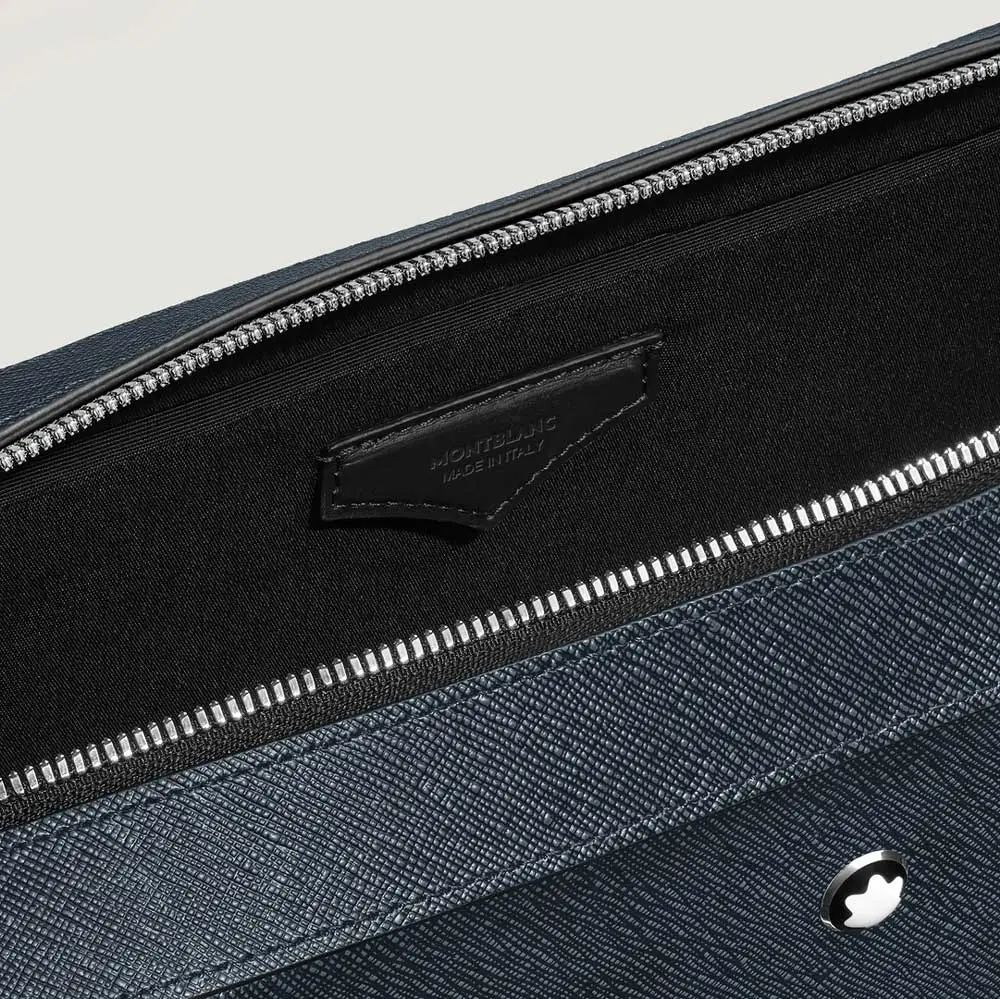 Interiér je prakticky organizován pomocí kapsy na zip, dvou otevřených přihrádek a držáků na psací nástroje, které udržují vše přehledně na svém místě. Kvalitní kovový zip, odolná podšívka z bavlny a polyamidu a promyšlená konstrukce chrání obsah i při každodenním používání. S rozměry 390 × 300 × 90 mm patří model MB220332 do kolekce Montblanc Sartorial, která spojuje nadčasový design, funkčnost a dokonalé zpracování vhodné pro náročné profesionály.
