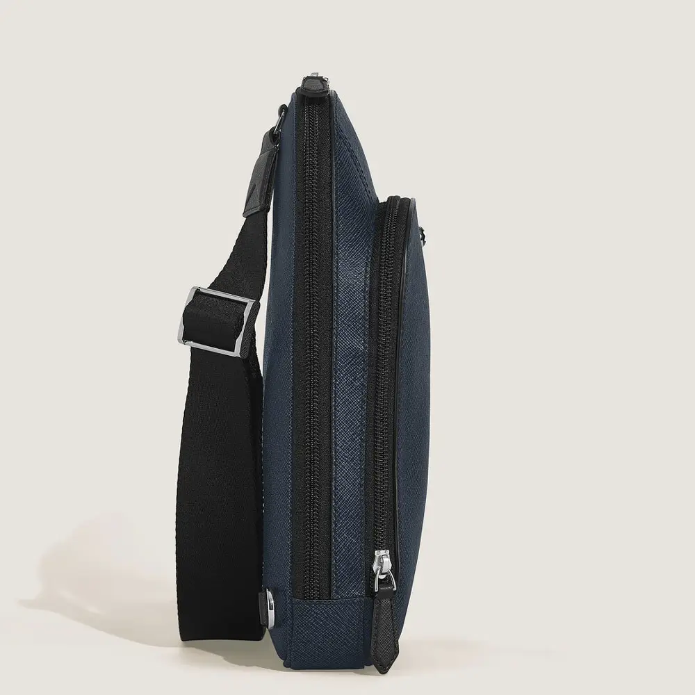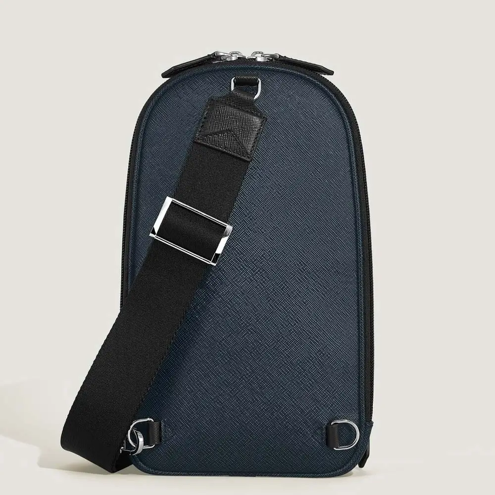 Elegantní crossbody taška Montblanc z kolekce Sartorial představuje spojení moderní funkčnosti a ikonického designu. Strukturovaná Saffiano full-grain kůže v odstínu Tweed Blue dodává modelu sofistikovaný, nadčasový vzhled a zároveň zajišťuje vysokou odolnost při každodenním používání. Kompaktní silueta a čisté linie podtrhují luxusní charakter doplňku, který se přirozeně hodí do městského i cestovního stylu.