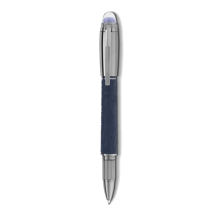 Typickým znakem kolekce je ikonický průhledný vršek s plovoucím emblémem Montblanc, který vytváří dojem, jako by se vznášel ve vzduchu – připomínka nekonečného prostoru a lidské touhy po objevování. Tělo per je vyrobeno z luxusních materiálů – od černé pryskyřice až po modely v kovovém provedení, doplněné o precizně opracované detaily z platinového nebo rutheniového kovu.