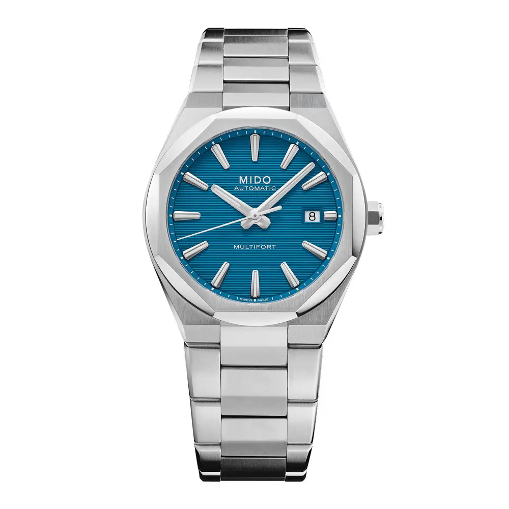 Model Mido Multifort 8 One Crown vyniká moderním designem inspirovaným architekturou, který definuje výrazná oktagonální luneta a integrovaný ocelový tah. Dynamický modrý číselník se strukturou dodává hodinkám hloubku a současný charakter, zatímco luminiscenční ručičky a indexy zajišťují výbornou čitelnost. Harmonická kombinace sportovní estetiky a elegance činí z modelu univerzální doplněk pro každodenní nošení.