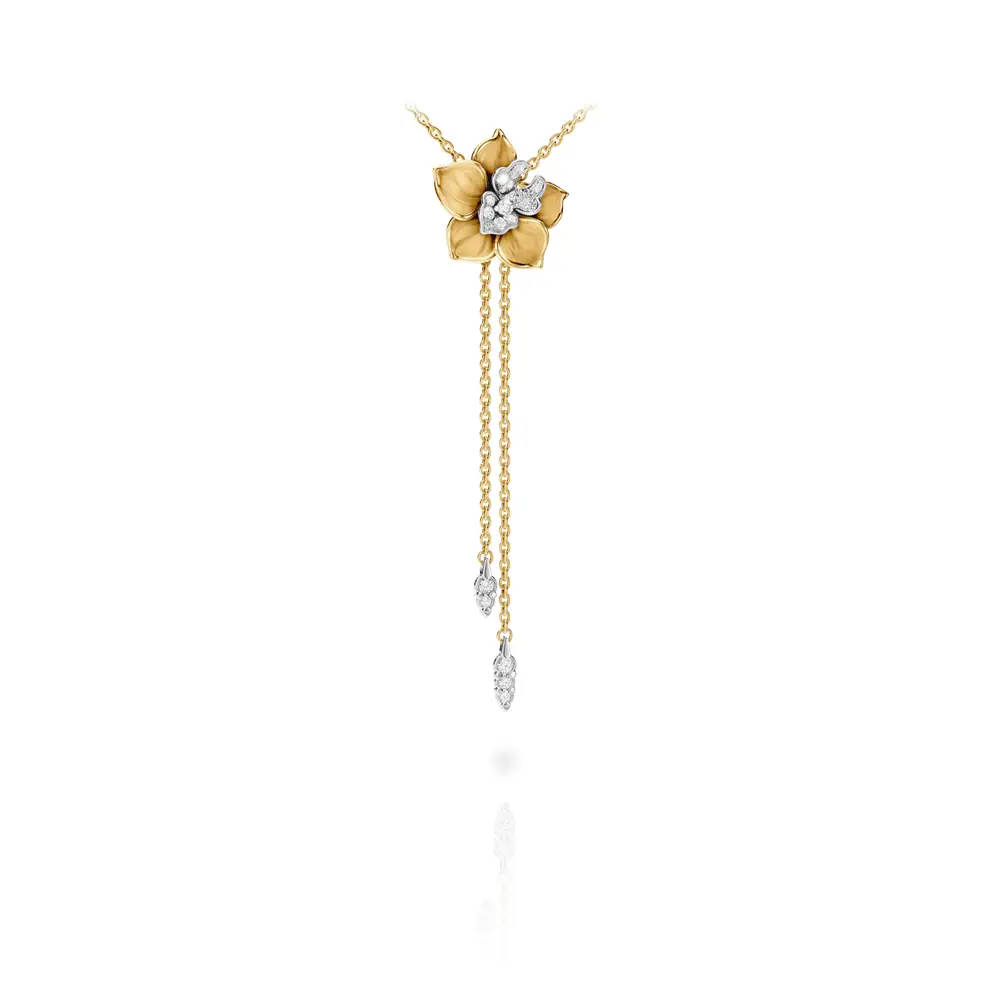 Carrera y Carrera Orquídeas náhrdelník (pendant) z kolekce Orquídeas od Carrera y Carrera představuje precizně zpracovaný luxusní šperk inspirovaný tvarem rozkvetlé orchideje. Náhrdelník je vyroben z 18kt žlutého a bílého zlata, které zajišťuje vysokou odolnost, dlouhou životnost a elegantní kontrast. Dominantním prvkem je sochařsky zpracovaný motiv orchideje v kaskádové kompozici, charakteristický jemnou modelací a dynamickou prací se světlem.