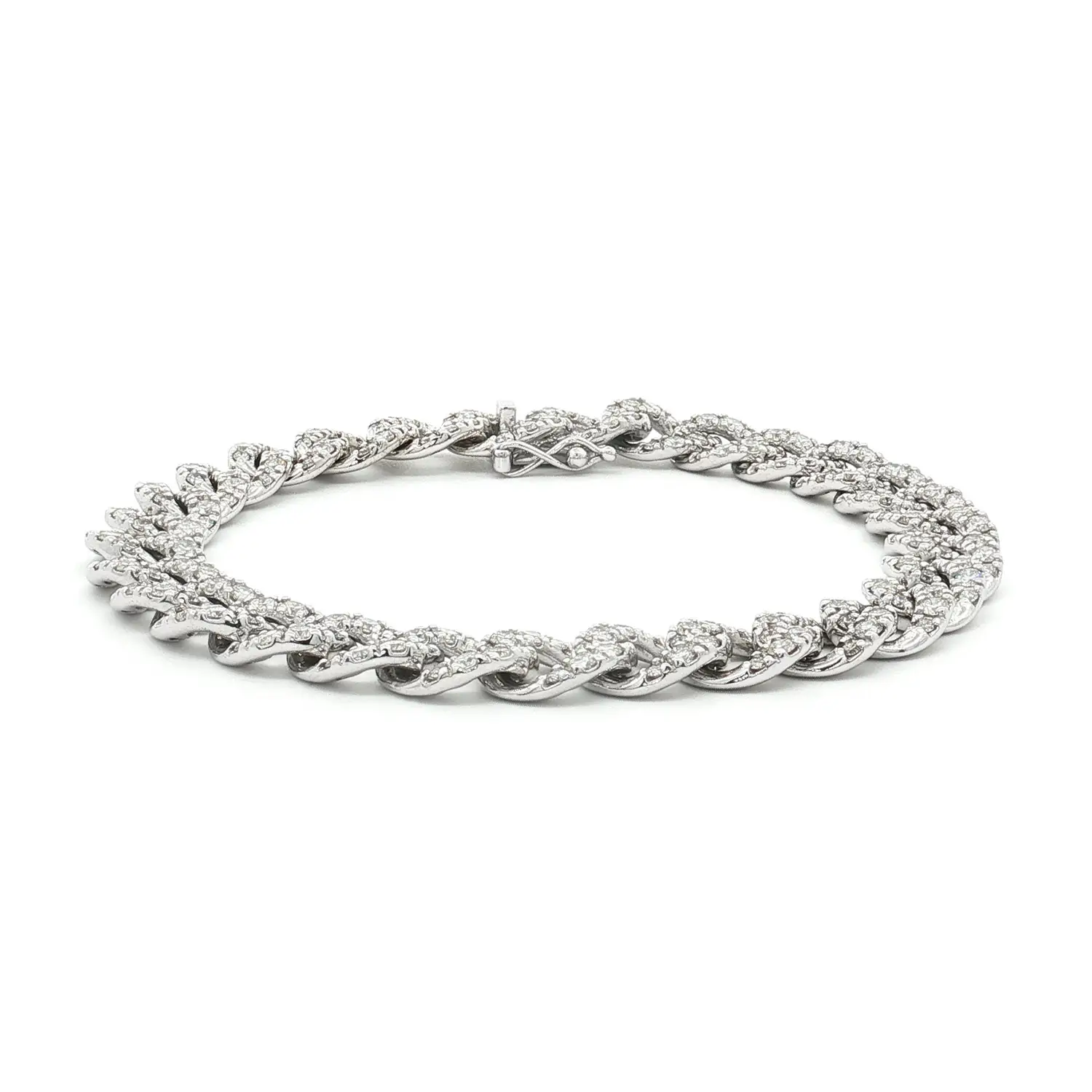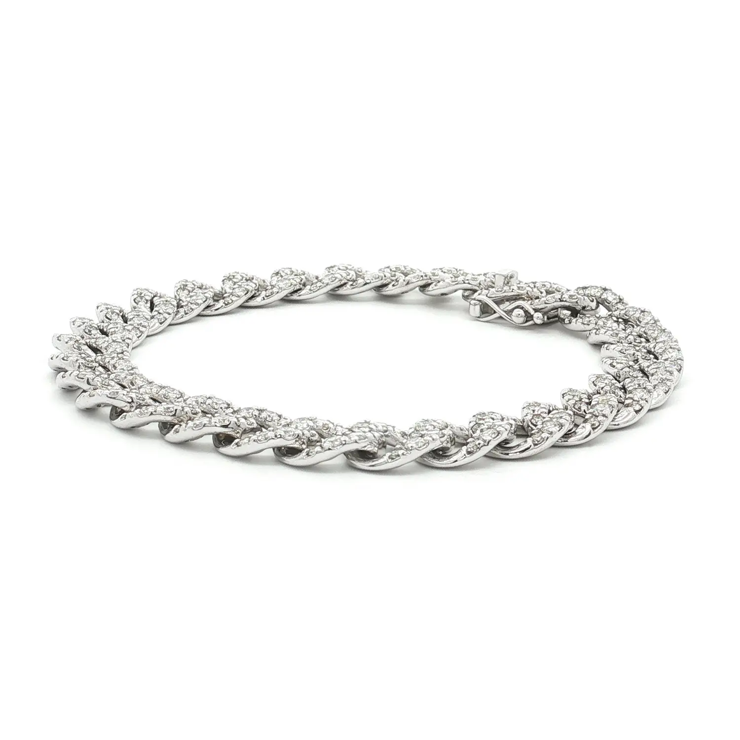 Náramek z bílého zlata s diamanty v článkovém designu