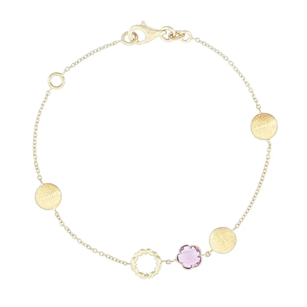 Náramek ze 14kt zlata s ametystem a zlatými prvky