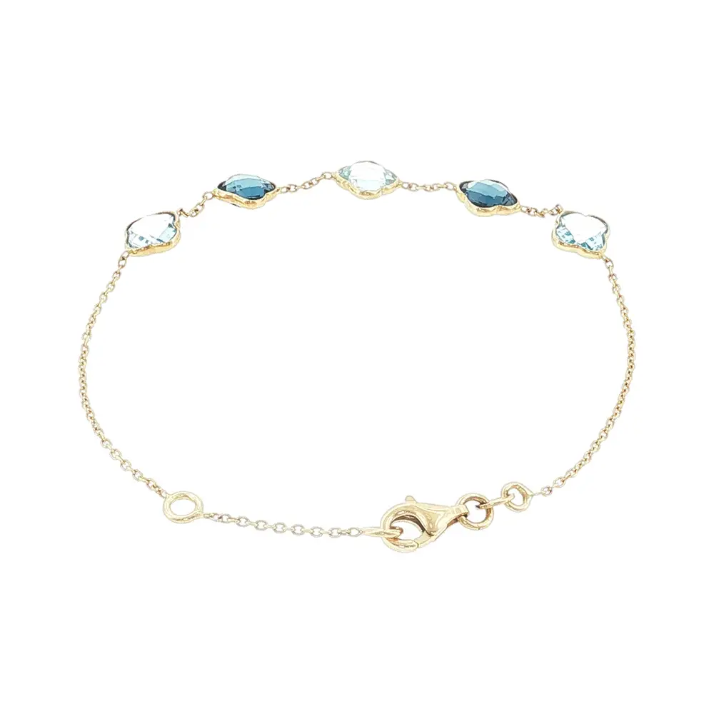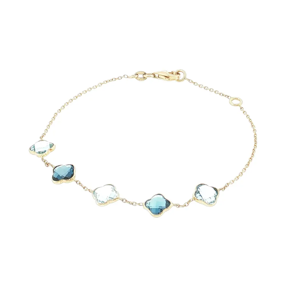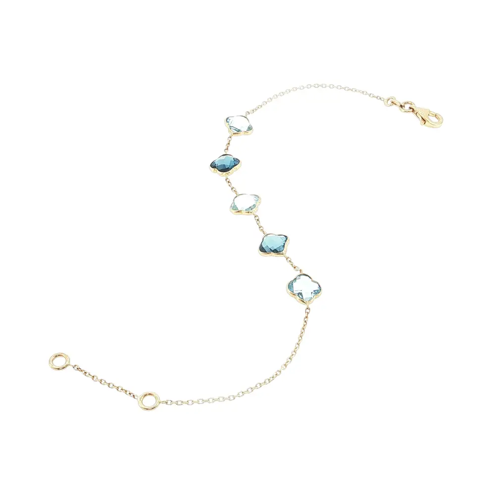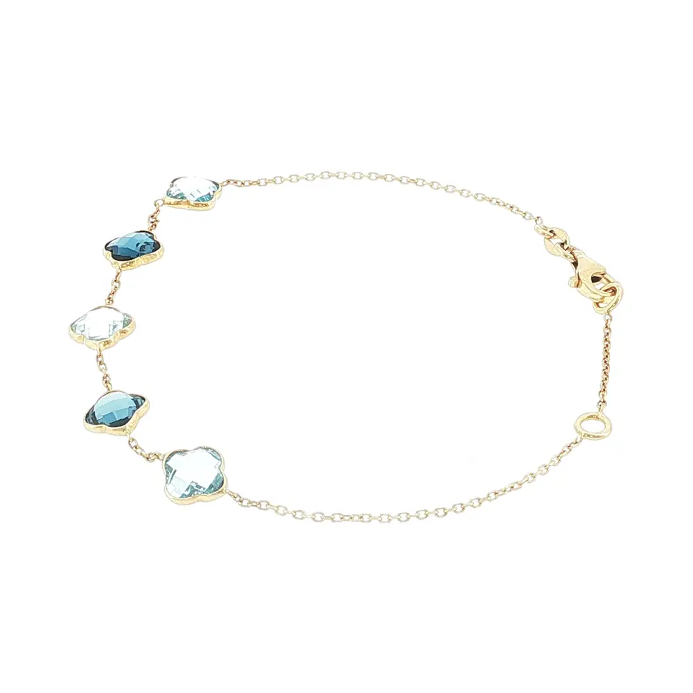 Náramek ze 14kt zlata s modrými kameny ve tvaru čtyřlístku