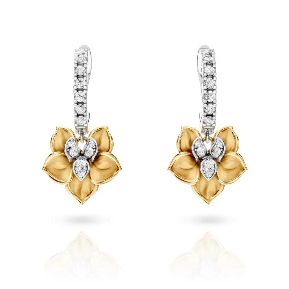 Carrera y Carrera Orquídeas Long náušnice z kolekce Orquídeas od Carrera y Carrera představují precizně zpracovaný luxusní šperk inspirovaný tvarem rozkvetlé orchideje. Náušnice jsou vyrobeny z 18kt žlutého a bílého zlata, které zajišťuje vysokou odolnost, dlouhou životnost a elegantní kontrast. Dominantním prvkem je sochařsky zpracovaný motiv orchideje v prodloužené vertikální kompozici, který vyniká jemnou modelací a dynamickou prací se světlem.