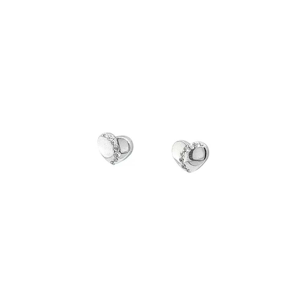 Náušnice Pecky z Bílého Zlata ve Tvaru Srdíček Zdobené Zirkony