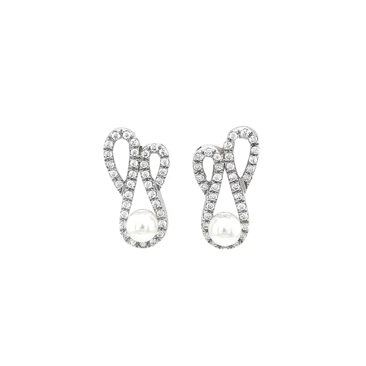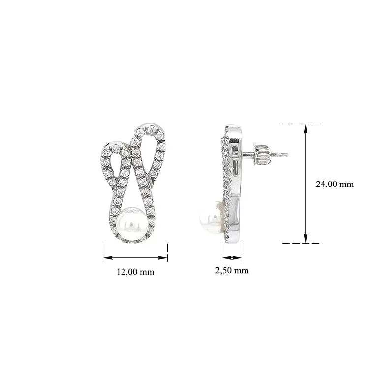 Náušnice s Perlou a Zirkony z Bílého Zlata