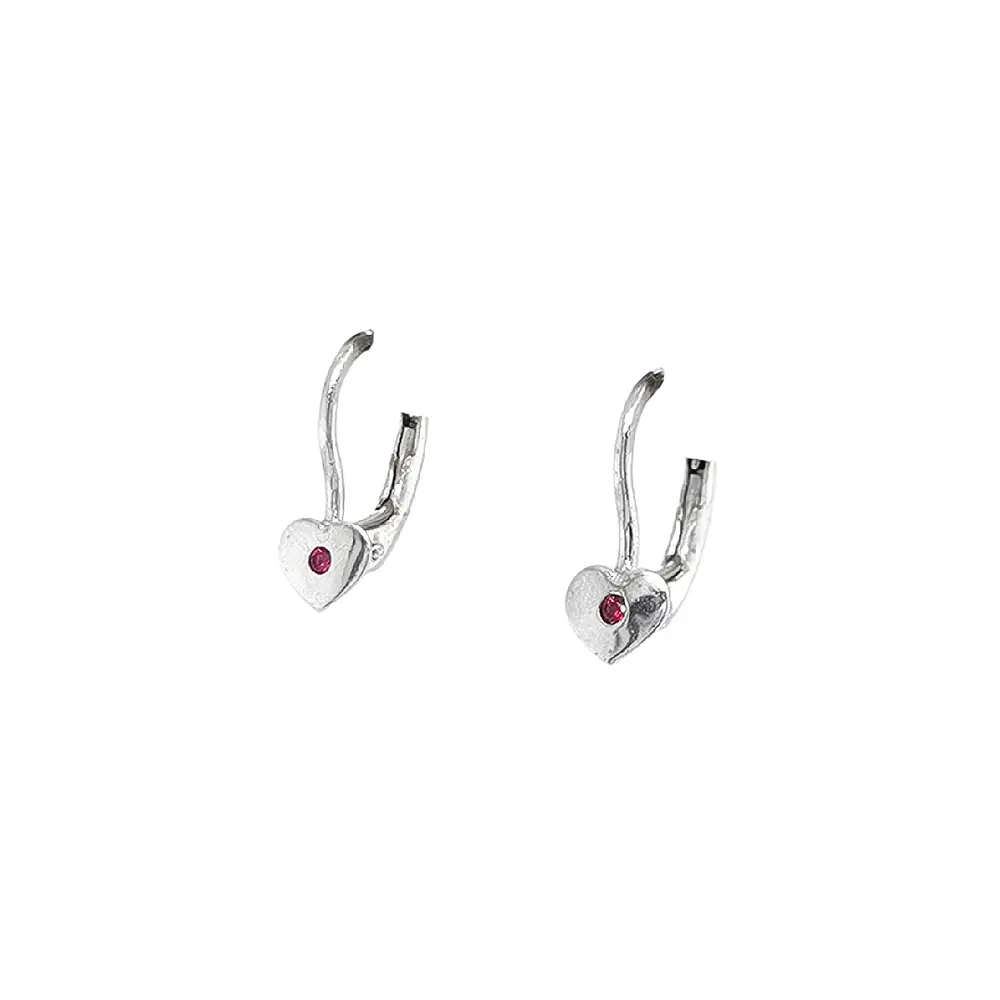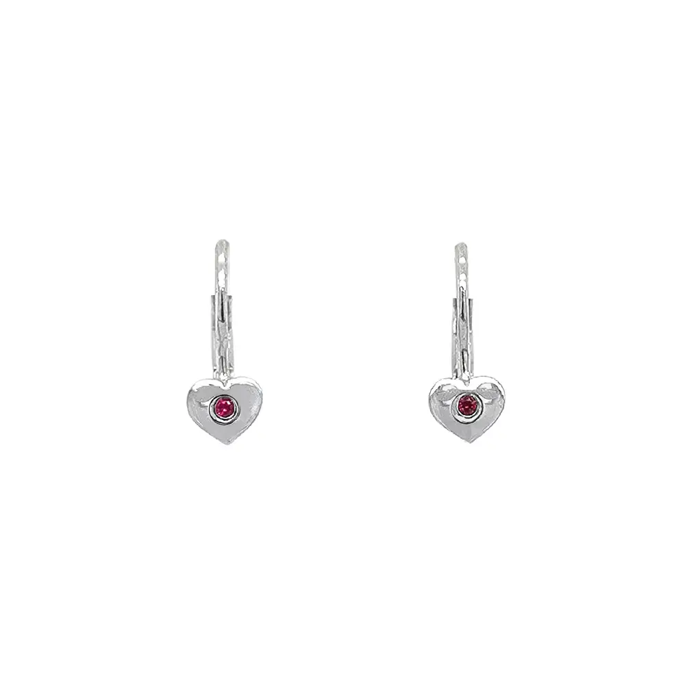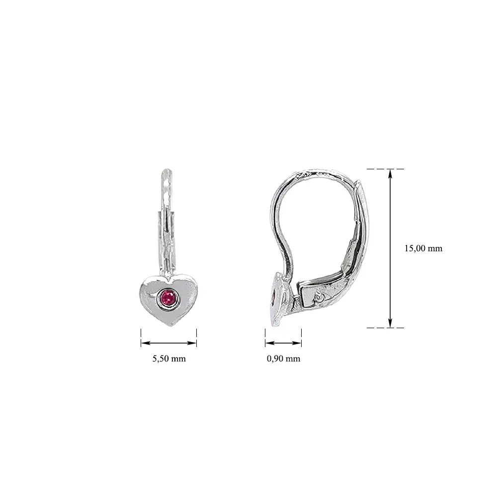 Náušnice Srdce s Rubínem z Bílého Zlata