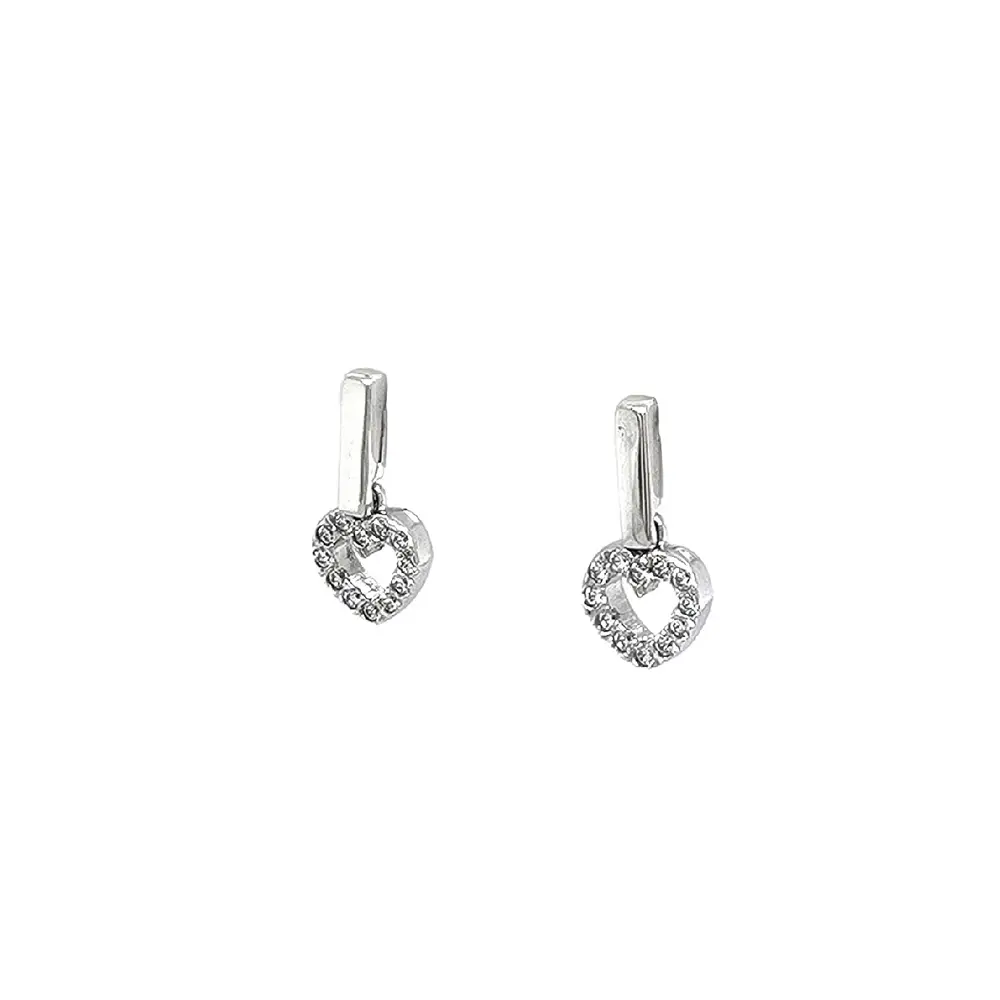 Náušnice ve Tvaru Srdce Zdobené Zirkony v Bílém Zlatě