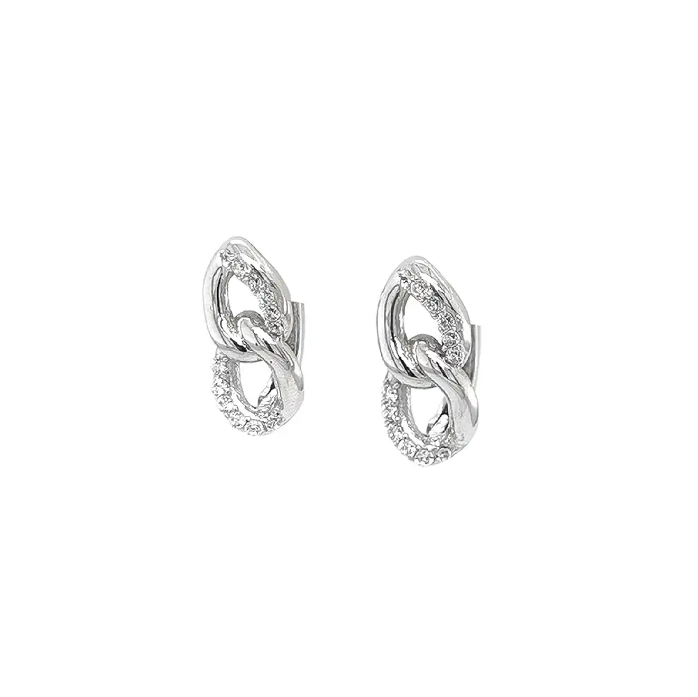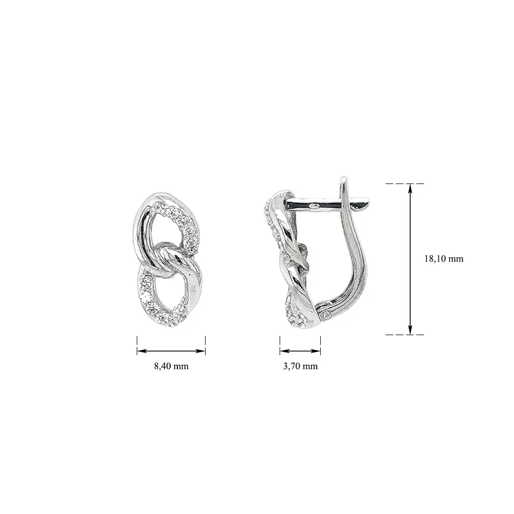 Náušnice z Bílého Zlata se Zirkony v Designu Propletených Článků