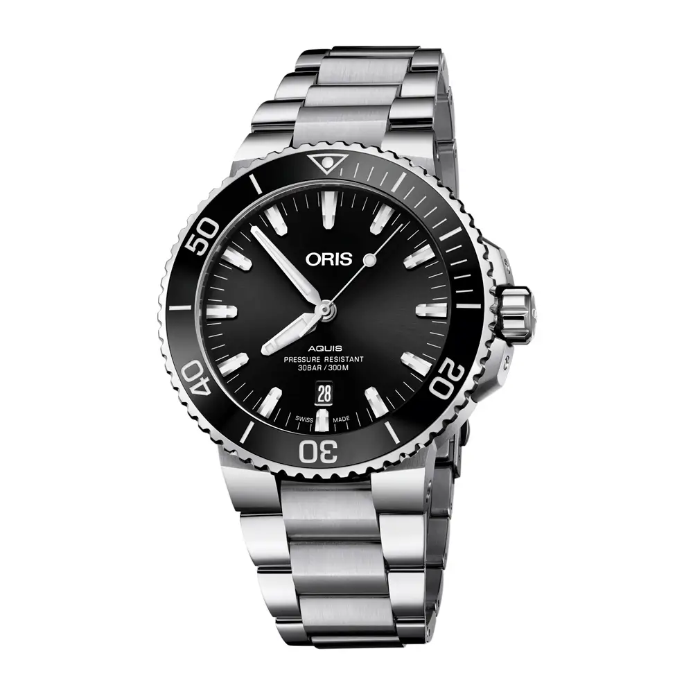 Oris Aquis je vlajkovou potápěčskou kolekcí značky, která spojuje funkčnost, robustní konstrukci a moderní design. Navržena pro skutečné nasazení pod vodou, kolekce Aquis nabízí vodotěsnost až 300 metrů, šroubovací korunku, jednosměrnou lunetu a vysokou odolnost vůči nárazům i tlaku.
