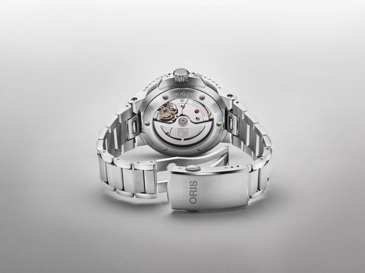 Hodinky jsou dodávány na ocelovém náramku, který doplňuje robustní vzhled modelu. Oris Aquis Date Calibre 400 je ideální volbou pro ty, kteří hledají kombinaci high-end technologie, výborné výkonnosti a elegantního potápěčského designu.