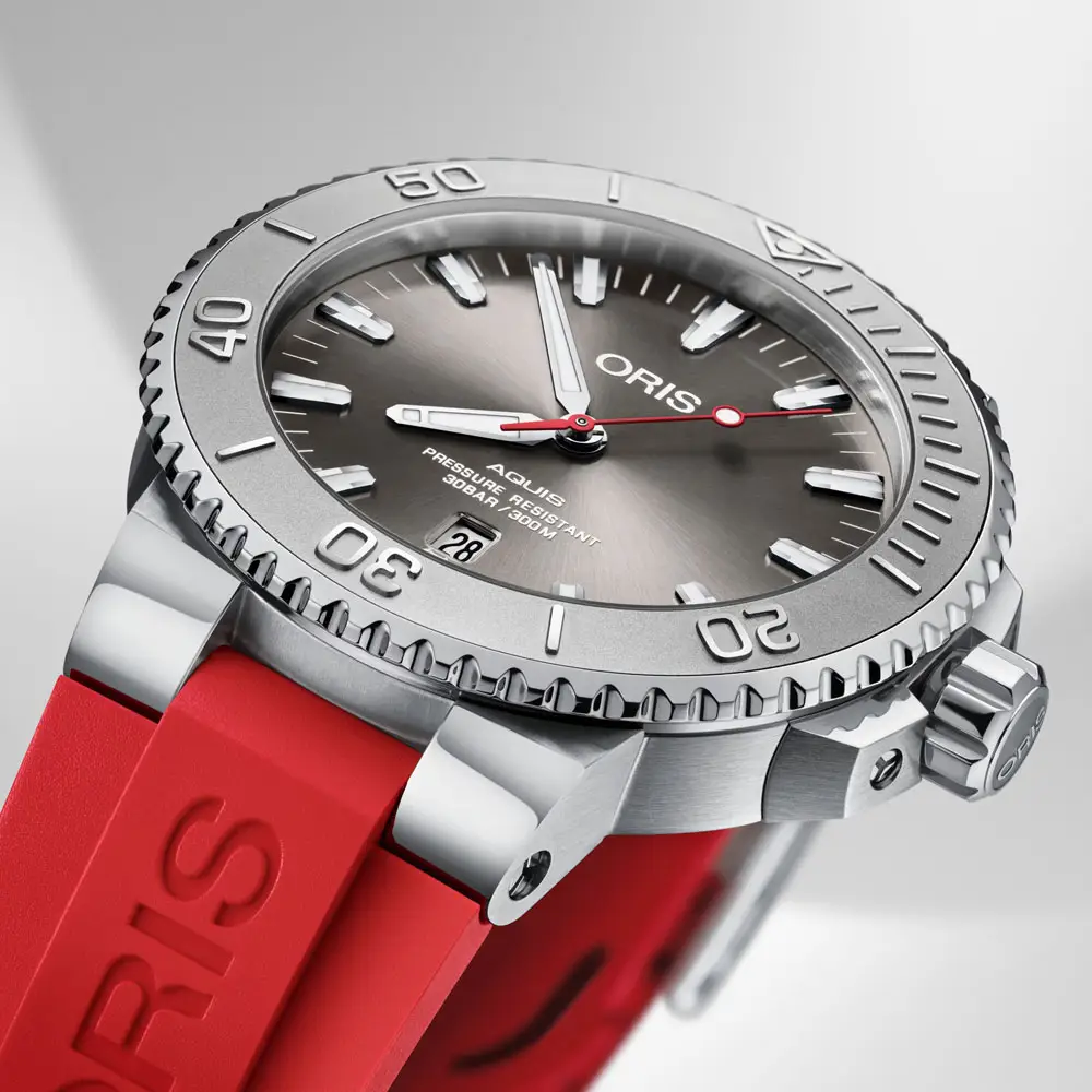 Model je voděodolný do 300 metrů (30 bar) a dodává se na šedém kaučukovém řemínku se sponou z nerezové oceli. Oris Aquis Date Relief představuje dokonalou rovnováhu mezi technickou přesností, odolností a moderním designem – ideální pro ty, kteří chtějí hodinky inspirované hlubinami oceánu i elegancí městského stylu.