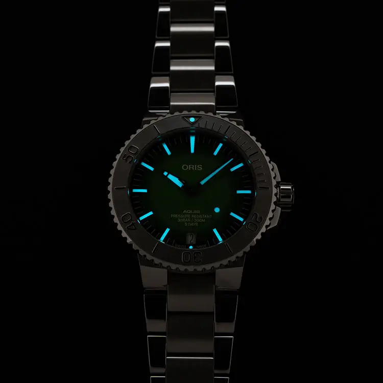 Oris Aquis je vlajkovou potápěčskou kolekcí značky, která spojuje funkčnost, robustní konstrukci a moderní design. Navržena pro skutečné nasazení pod vodou, kolekce Aquis nabízí vodotěsnost až 300 metrů, šroubovací korunku, jednosměrnou lunetu a vysokou odolnost vůči nárazům i tlaku.