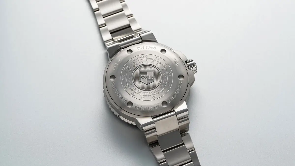 Uvnitř se skrývá automatický kalibr Oris 743 (založený na Sellita SW 220-1), který nabízí rezervu chodu 38 hodin a spolehlivý výkon při každodenním používání i profesionálním potápění. Strojek je viditelný skrze průhledné dýnko, které odhaluje precizní dekoraci a mechanickou krásu.