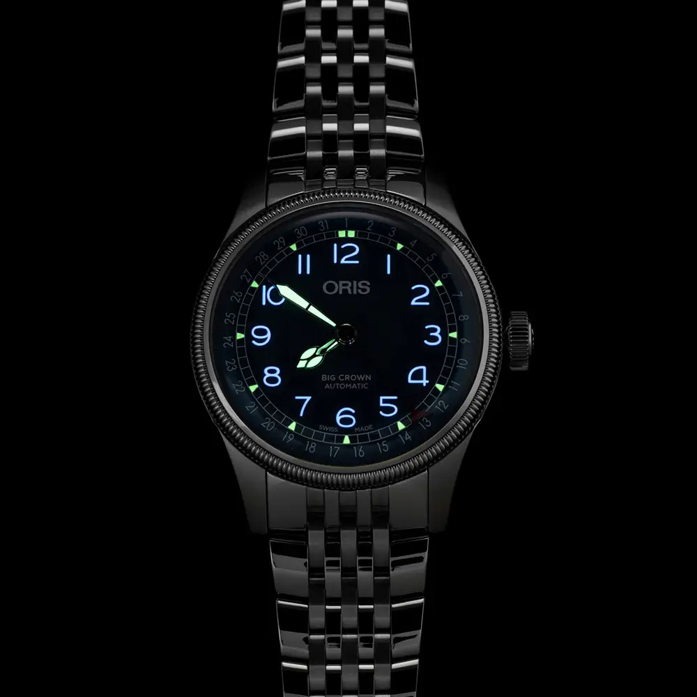 Oris Big Crown je jednou z nejikoničtějších kolekcí značky, představená již v roce 1938 jako hodinky pro piloty. Charakteristickým rysem je velká vroubkovaná korunka, navržená tak, aby ji bylo možné ovládat i v rukavicích – detail, který dodnes odkazuje na letecké kořeny kolekce.