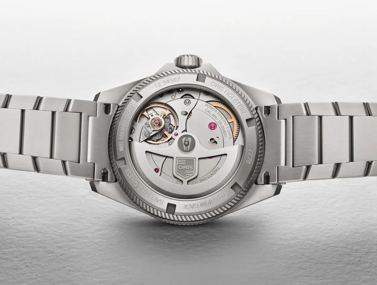 Uvnitř pracuje manufakturní kalibr Oris 400, který nabízí rezervu chodu až 120 hodin (5 dní), výjimečnou přesnost a zvýšenou odolnost vůči magnetismu. Díky inovativní konstrukci i důrazu na spolehlivost poskytuje značka 10letou záruku při registraci v systému MyOris. Voděodolnost 100 metrů (10 bar) doplňuje každodenní praktičnost modelu.