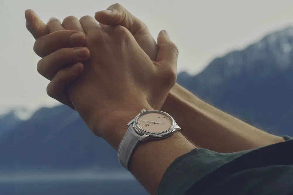 Parmigiani Toric Petite Seconde Platinum “Golden Hour” je oslavou ticha a detailu, kde každý prvek působí jako součást čistého, harmonického celku. Pouzdro z platiny v kombinaci s ručně zrněným ciferníkem z pevného zlata evokují eleganci, která není nápadná ‒ ale hluboce působivá. Zeleno-šedý řemínek z nubukové aligátorové kůže dodává modelu sofistikovanou texturu a kontrast, připomínající ranní světlo.