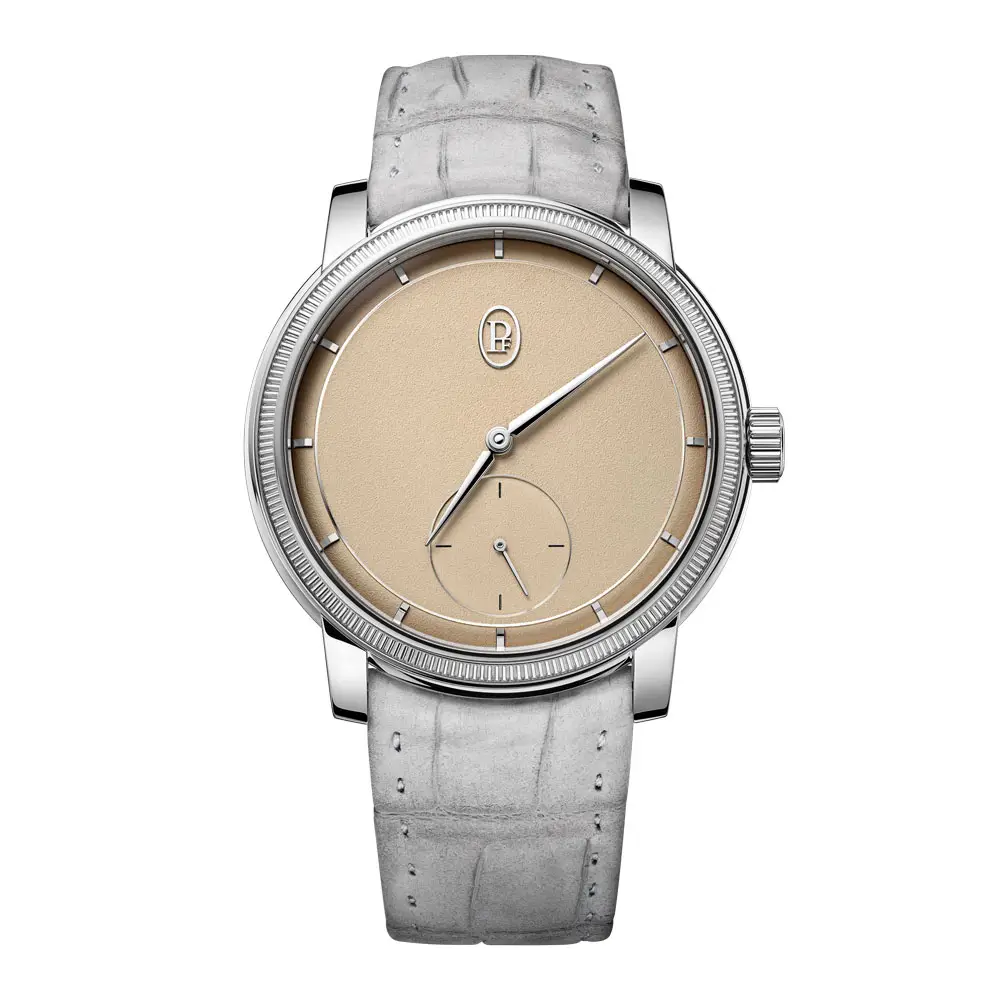 Ručně natahovaný kalibr PF780 s malou sekundovou ručkou odhaluje své precizní zdobení – můstky s Côtes de Fleurier, jemné fazety a dokonale leštěné detaily. Strojek bije na frekvenci 4 Hz a při plném natažení nabízí až 60 hodin rezervy chodu.