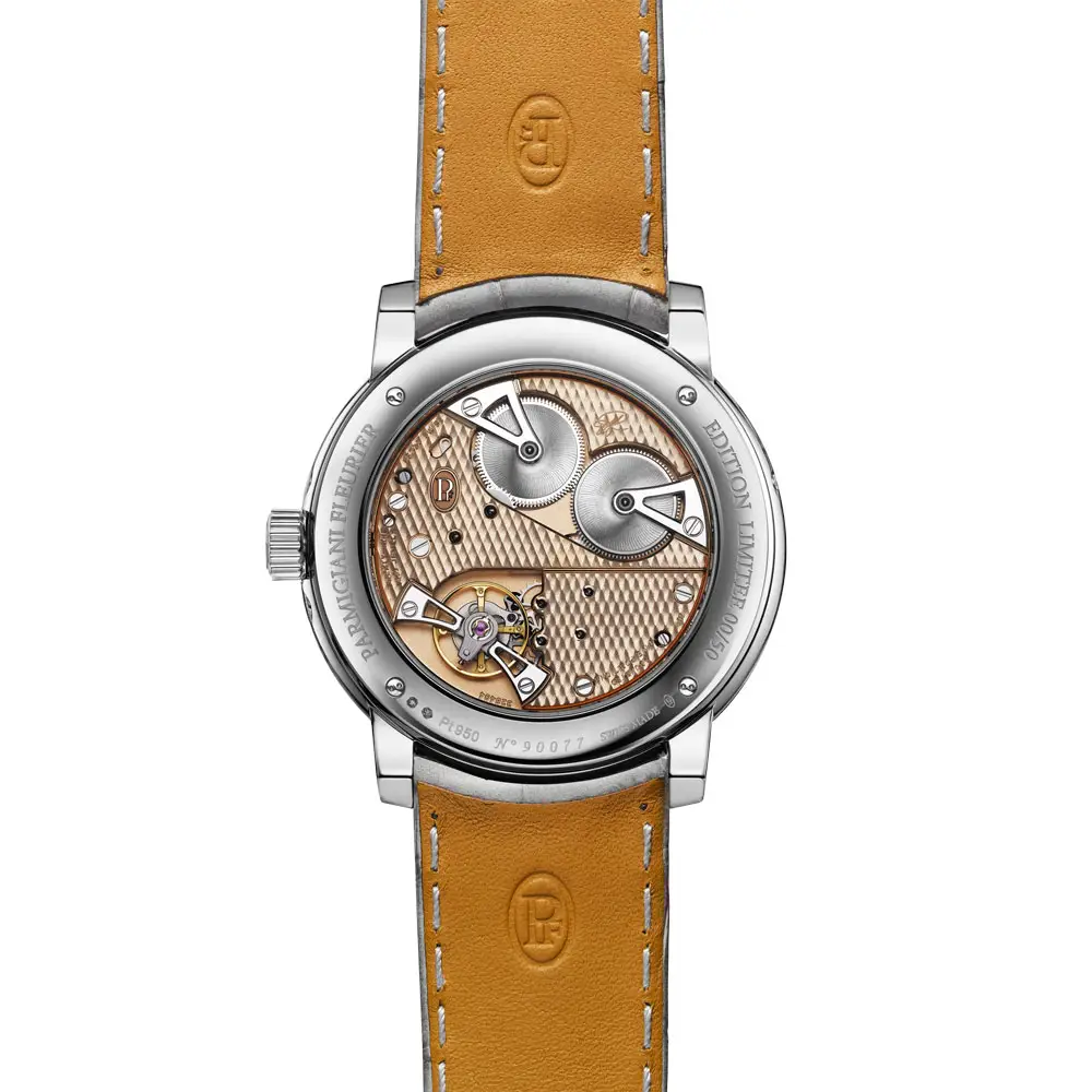 Uvnitř se nachází manufakturní kalibr PF733 s manuálním nátahem, složený z 265 součástek a osazený 29 rubíny. Nabízí frekvenci 4 Hz a rezervu chodu 60 hodin. Funkce věčného kalendáře zahrnuje den, datum, měsíc a přestupný rok, přehledně uspořádané na dvou subčíselnících pro dokonalou čitelnost.