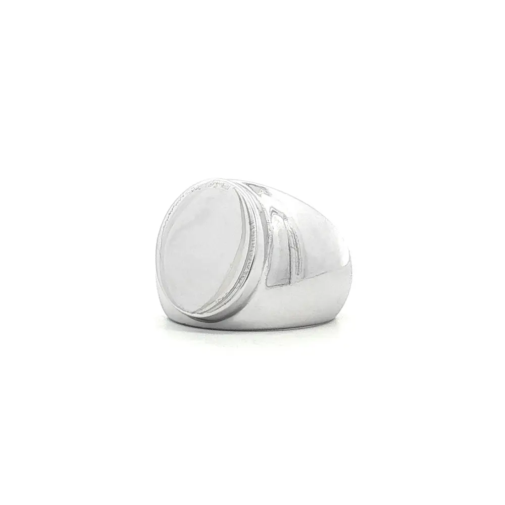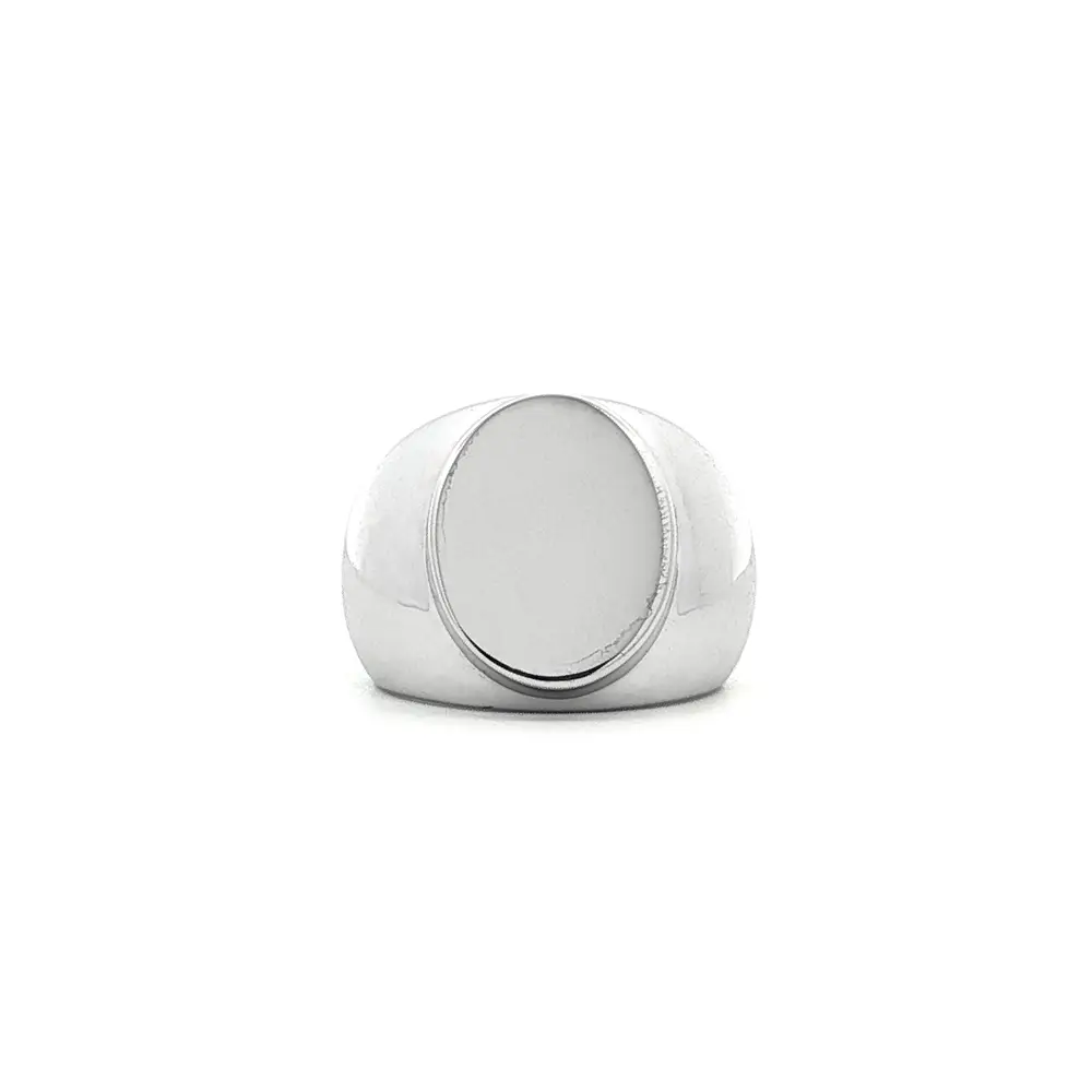 Tento masivní pečetní prsten je vyroben z 14karátového bílého zlata (585/1000) a představuje ideální spojení klasické elegance a moderního minimalismu. Jeho výrazný oválný štít s leštěným povrchem je jako stvořený pro osobní gravírování, které prstenu dodá jedinečný charakter – ať už zvolíte iniciály, rodinný erb či osobní symbol.