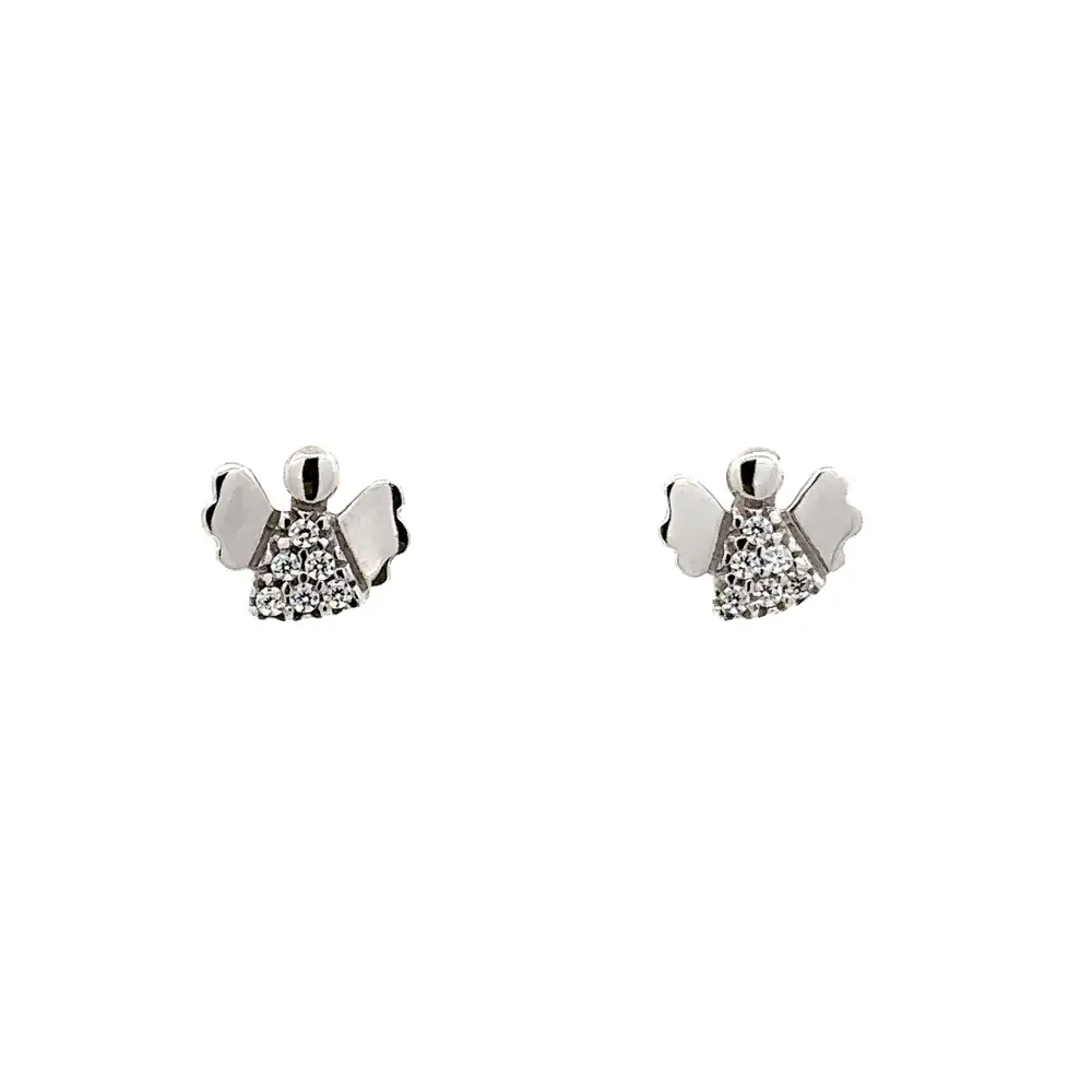 Peckové Náušnice Anděl se Zirkony z Bílého Zlata