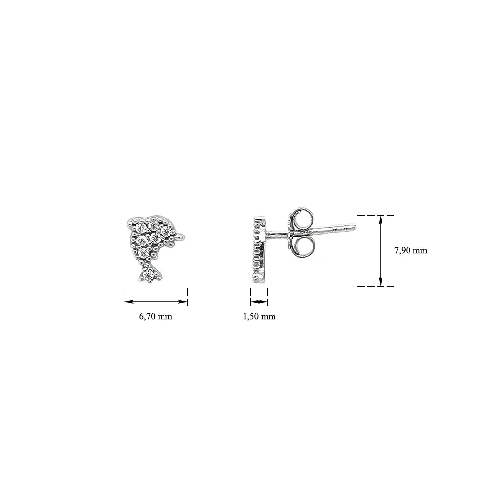 Peckové Náušnice ve Tvaru Delfína z Bílého Zlata se Zirkony