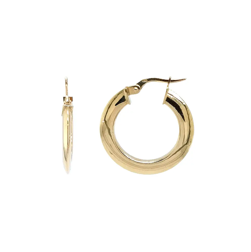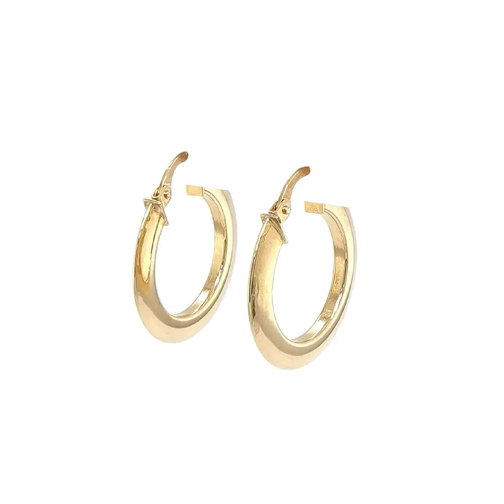 Ploché Kruhové Náušnice ze Žlutého Zlata s Tyčinkovým Zapínáním