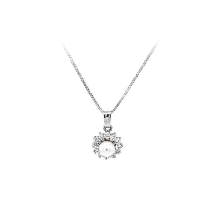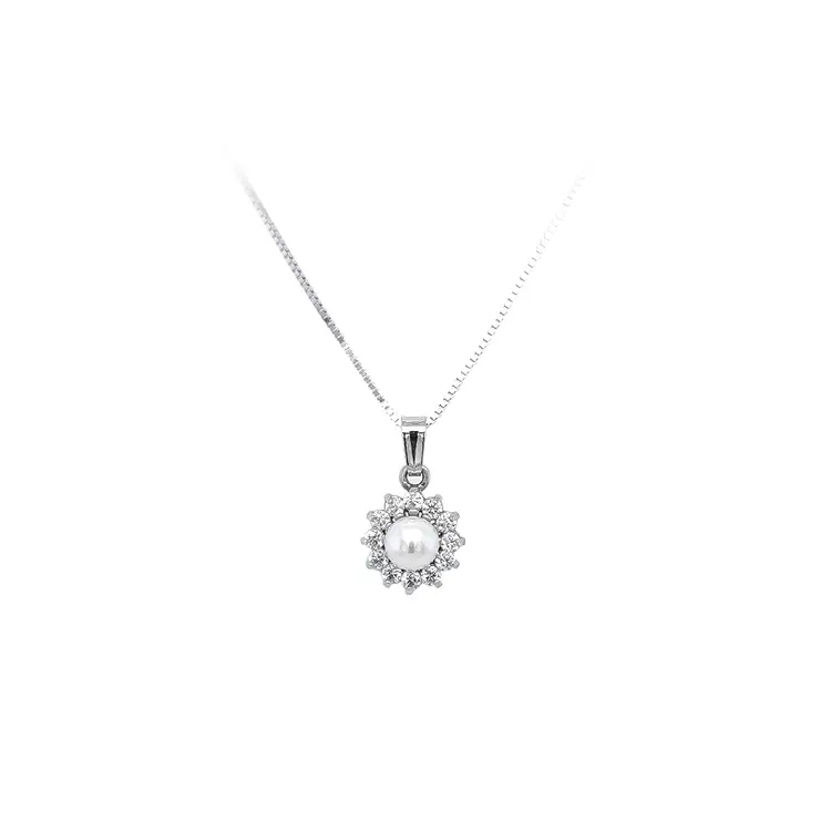 Přívěsek s Perlou a Zirkony z Bílého Zlata