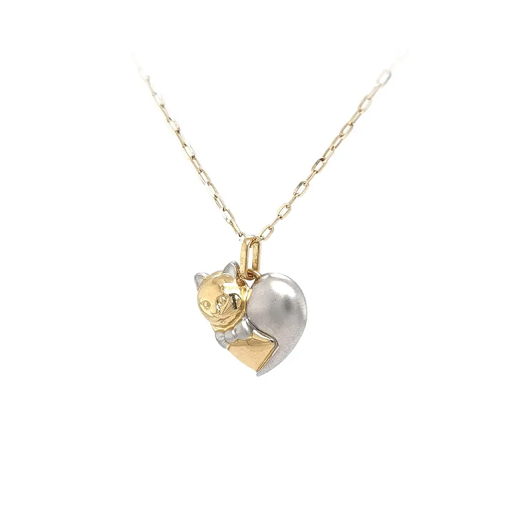 Přívěsek Srdce Kočka z Kombinovaného Zlata