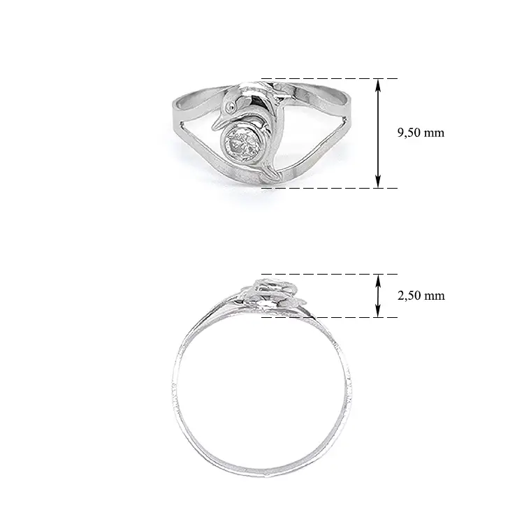 Prsten Delfín se Zirkonem z Bílého Zlata