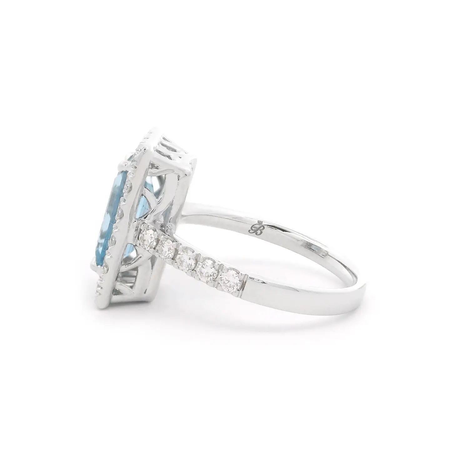 Prsten z bílého zlata s akvamarínem a diamanty