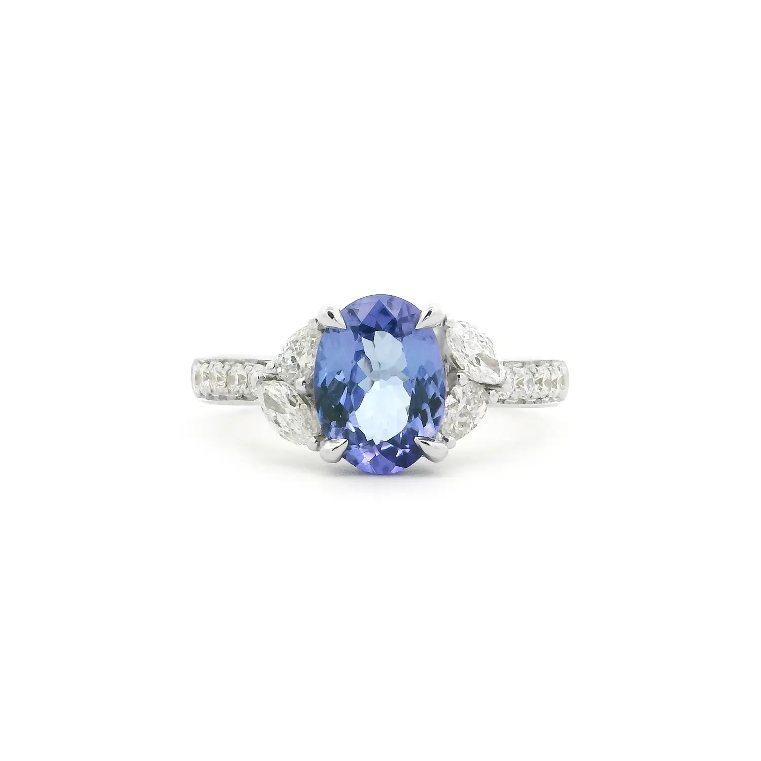 Prsten z bílého zlata s oválným tanzanitem a diamanty