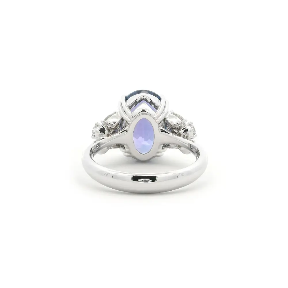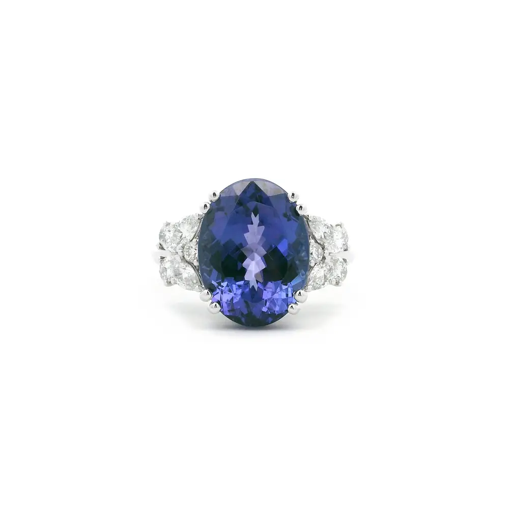 Tento elegantní prsten z 18kt bílého zlata je dokonalým spojením jemnosti a luxusu. V jeho středu se vyjímá oválný tanzanit, drahokam s hypnotizující hrou odstínů od modré po fialovou, který symbolizuje jedinečnost a duchovní sílu. Jeho sytý tón a brilantní lesk přitahují pozornost a podtrhují ženskou eleganci.