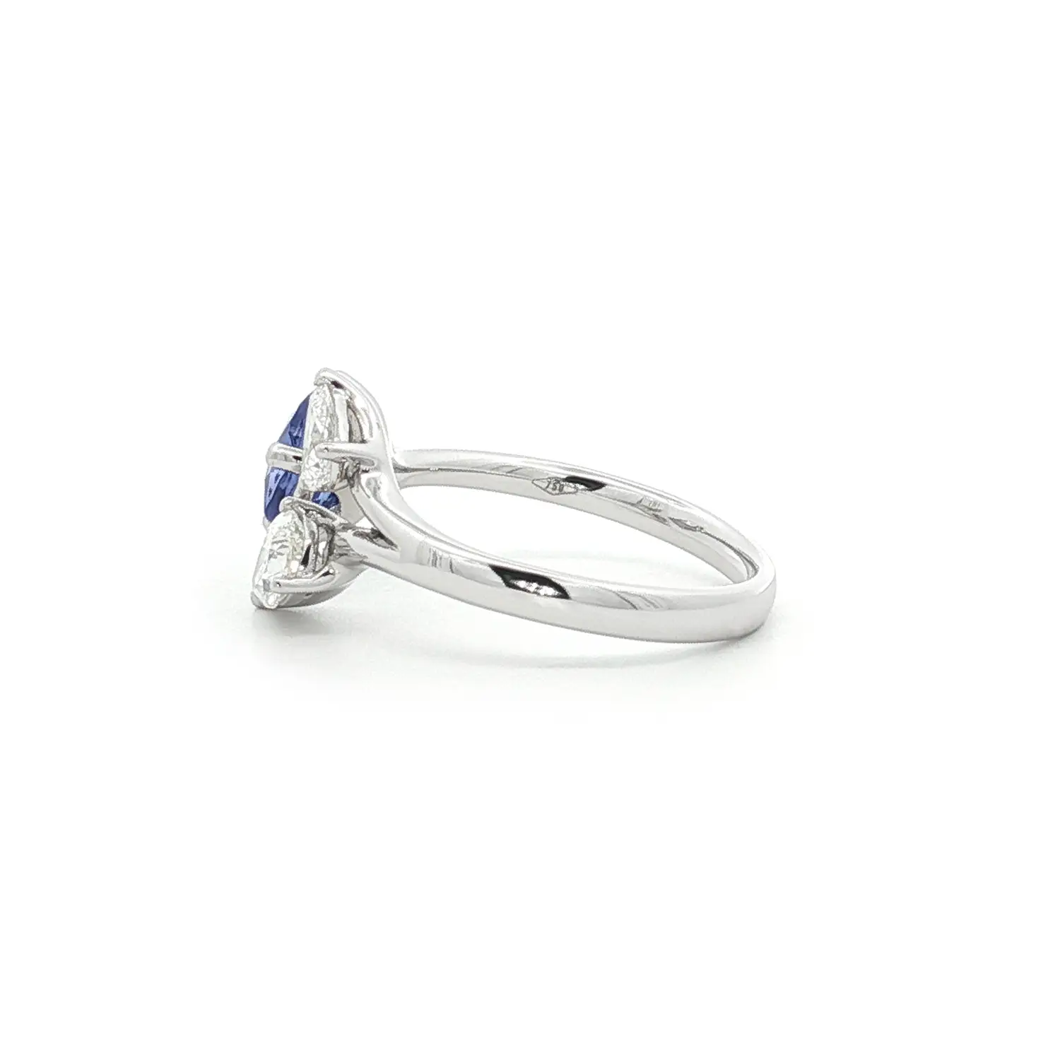 Prsten z bílého zlata s tanzanitem a diamanty ve tvaru kapky