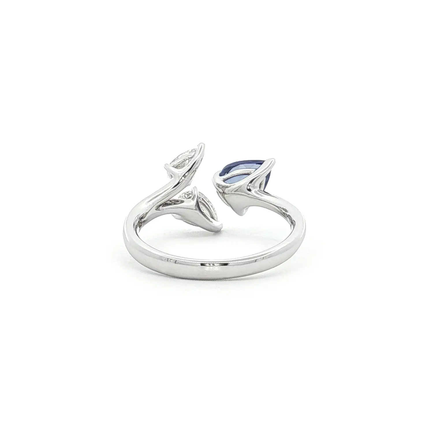 Tento sofistikovaný prsten z bílého zlata s tanzanitem a diamanty ztělesňuje moderní eleganci s nádechem jemné asymetrie. Dominantou šperku je tanzanit brusu kapky, jehož hluboký modrofialový odstín evokuje tajemství afrického soumraku. Jeho přirozený lesk vyniká v kontrastu s brilantními diamanty, které se rozvíjejí po boku kamene jako jemné okvětní lístky. Tanzanit, známý svou schopností měnit odstíny v závislosti na světle, je symbolem intuice, originality a duchovní rovnováhy.