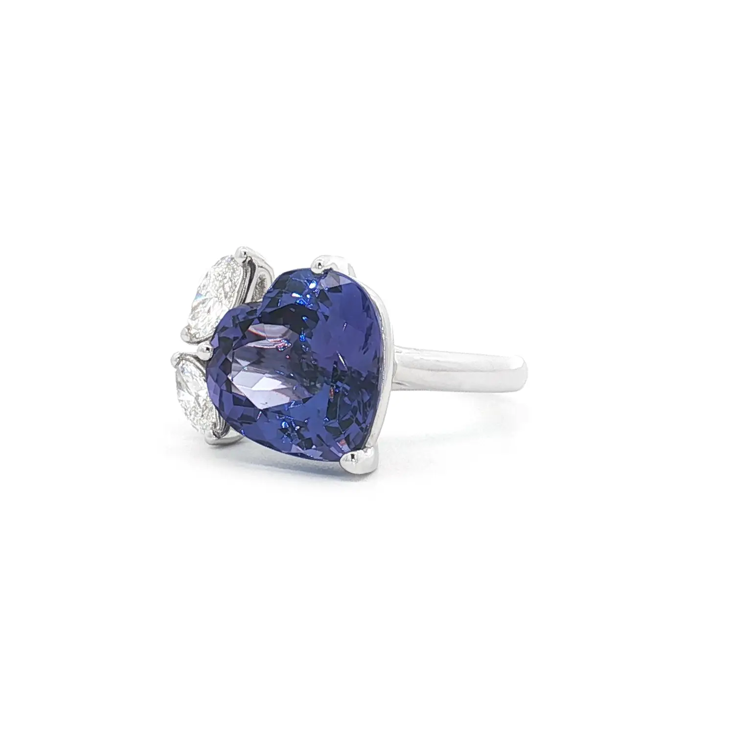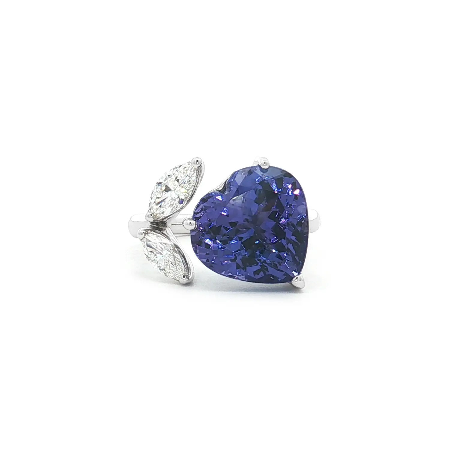 Prsten z bílého zlata s tanzanitem ve tvaru srdce a diamanty