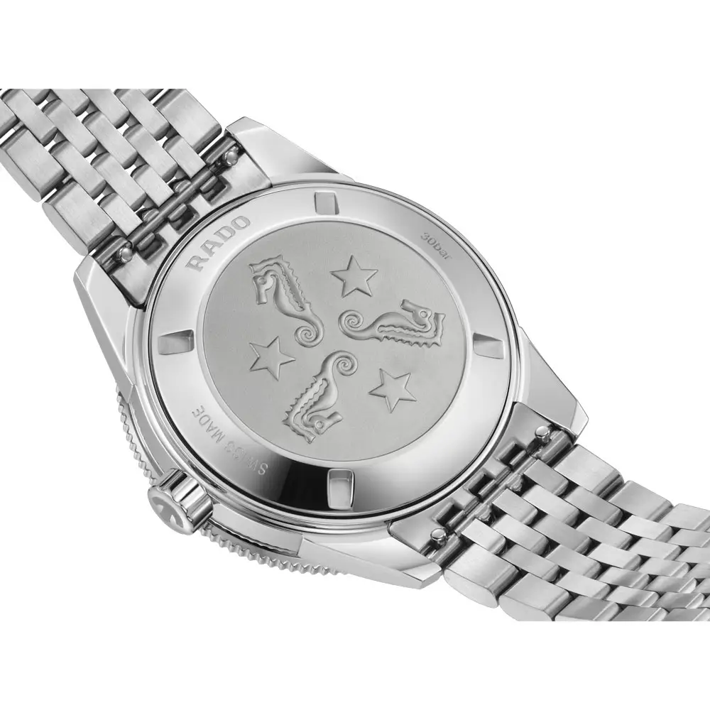 Uvnitř pracuje automatický kalibr Rado R763 s rezervou chodu až 80 hodin, testovaný v několika polohách pro maximální přesnost. Technologie Nivachron™ zvyšuje odolnost vůči magnetismu a stabilitu chodu. Robustní konstrukce se šroubovacím dýnkem podtrhuje odolnost modelu. Tento model je ideální volbou pro muže hledající sportovní a spolehlivé potápěčské hodinky s nadčasovým designem.
