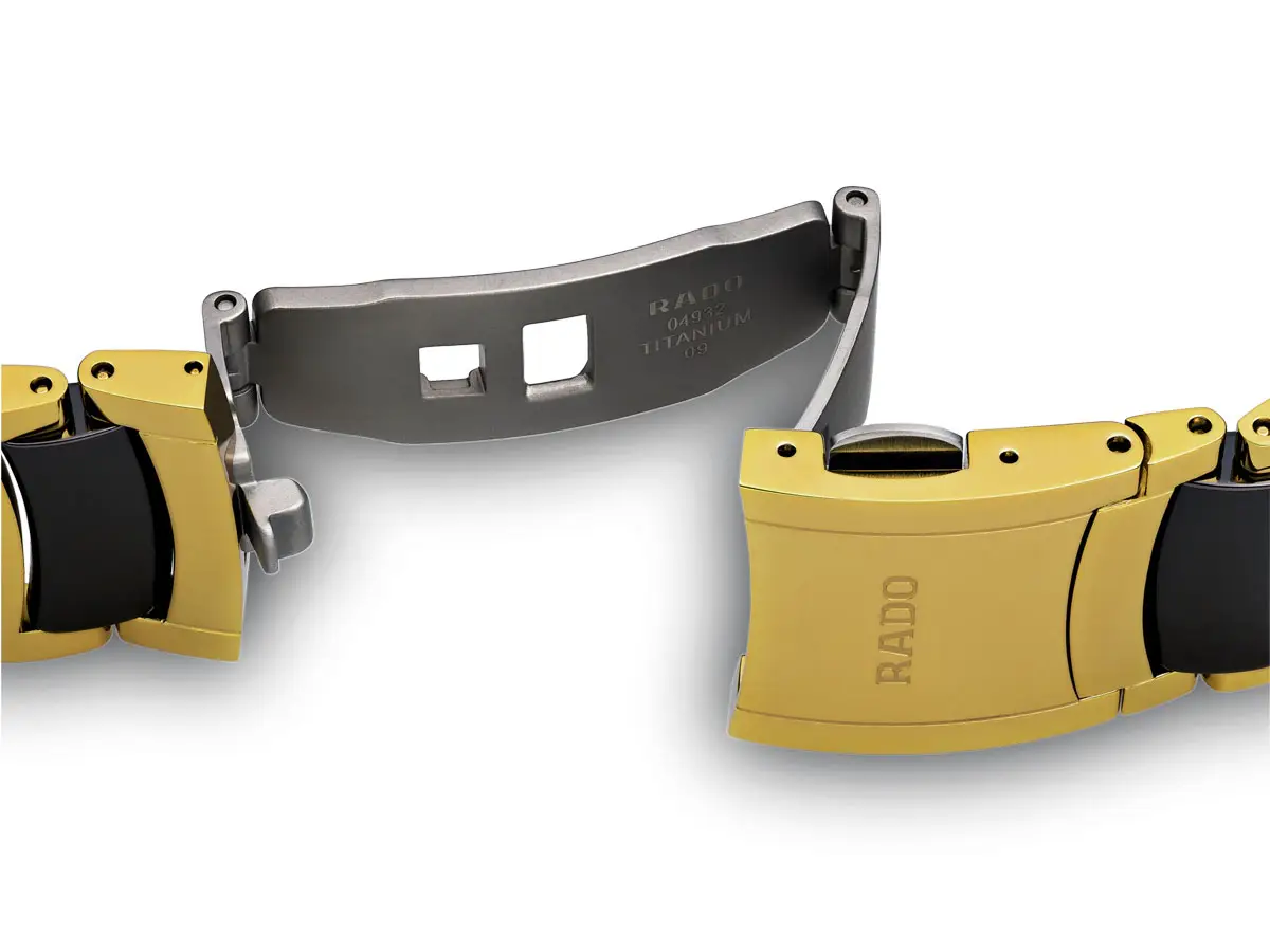 Náramek hodinek tvoří kombinace keramiky, oceli a žlutého zlacení, což vytváří atraktivní bicolor efekt, zatímco překlápěcí spona zajišťuje pohodlné a bezpečné nošení. Uvnitř pracuje mechanický strojek s automatickým nátahem, který se postará o přesný chod bez nutnosti výměny baterie.