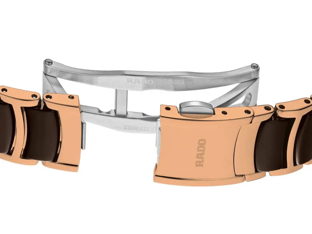 Materiál řemínku | Kombinace keramiky, nerezové oceli a růžového zlacení |