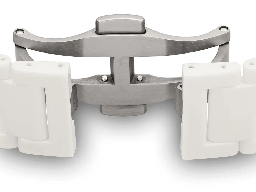 Rado True Square Automatic Open Heart v provedení s hranatým keramickým pouzdrem o velikosti 38 mm představuje moderní ztělesnění luxusu a inovativního designu. Minimalistické linie pouzdra z keramiky doplňuje bílý keramický pásek zakončený překlápěcí sponou, který je lehký, odolný a příjemný na nošení.